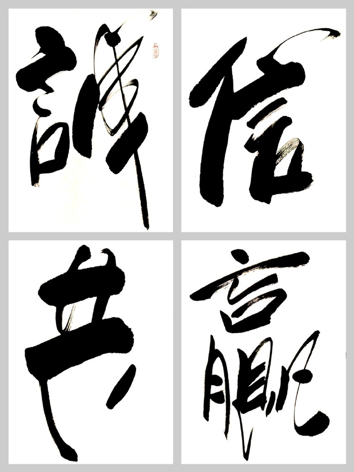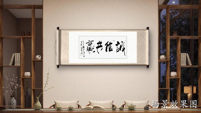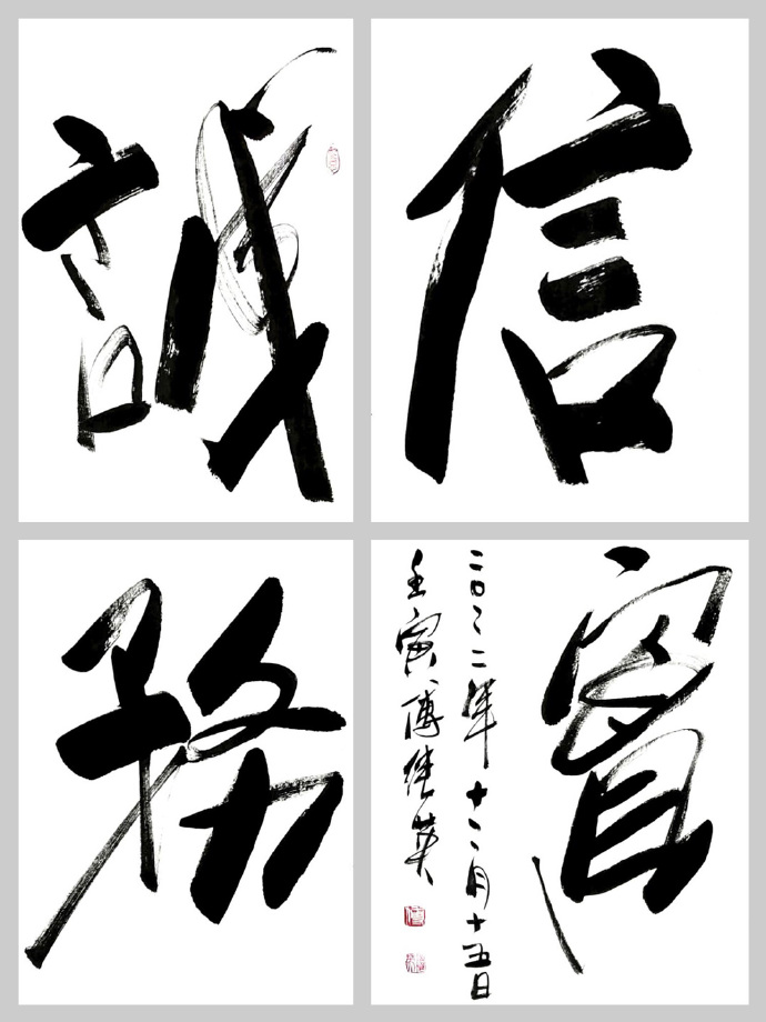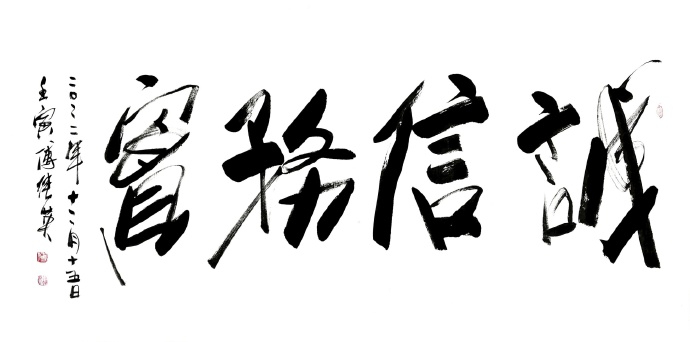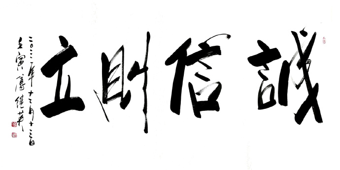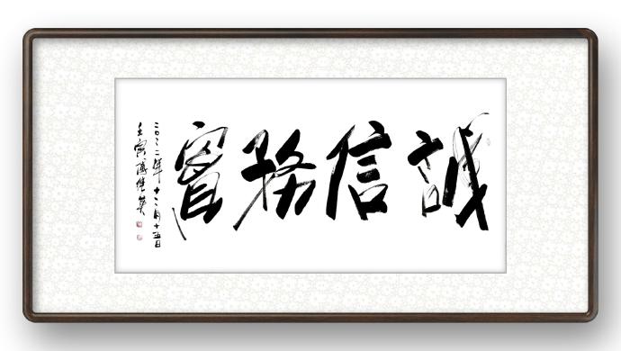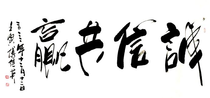 傅继英书法:诚信务实。指诚实守信,不失约,不违言,做事都做到实实在在,实事求是,不弄虚作假。从道德范畴来讲,诚信即待人处事真诚、老实、讲信誉,言必行、行必果,一言九鼎,一诺千金。