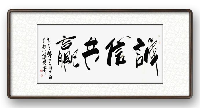 傅继英书法:诚信共赢。诚实守信用,实现共同赢利。诚信为本合作共赢意思是只有在诚信的基础上,才能够互惠互利、相得益彰,实现双方或多方的共同收益。一个人如果诚信的话,那么和他合作的人就会有很多,他可以走的路也很远,如果一个人讲诚信,那么别人都愿意和他合作,他就能获得很多的利益。