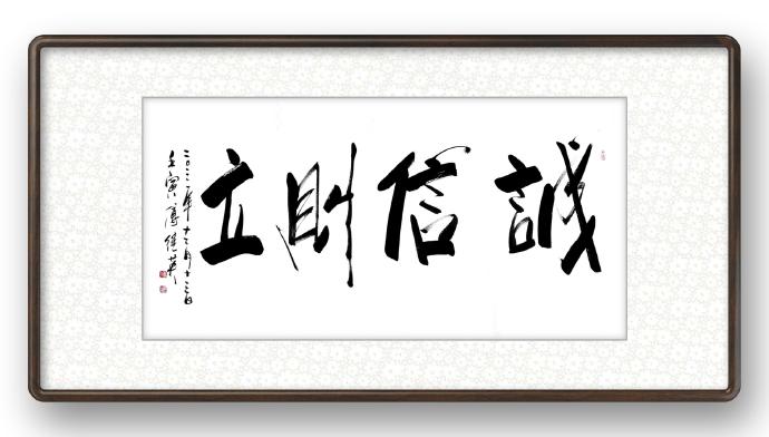 傅继英书法:诚信则立。出自“ 信则立,不信则废”,意思为:诚信导致成功,而不诚信则导致荒废失败。无论是做事还是做人,都要讲诚信,此幅佳作挂在企业公司办公室,尤其是做生意的场所是相当合适的。不仅能起到装饰作用,而且更能增加公司或自己的信誉,使人更放心与自己合作,作为礼品馈赠给做生意的朋友也是很不错的选择。