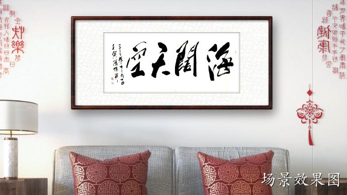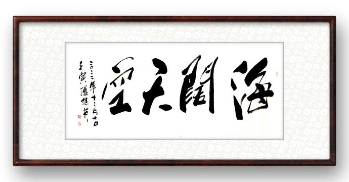 傅继英老师的这幅“海阔天空”,行云流水,不拘一格,写出了海阔天空的气魄与不羁。此幅作品挂在书房公司企业办公室等都非常合适,不仅起到装饰作用,又能提升自身的品位修养。作为礼品馈赠他人也是非常不错的。