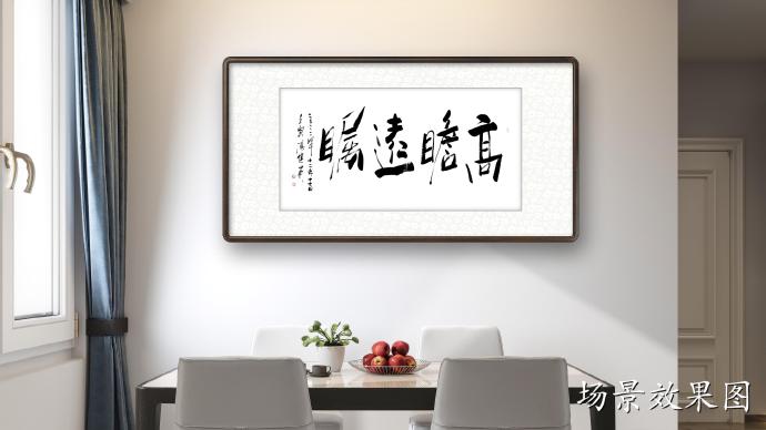 此幅作品《高瞻远瞩》挂至家中书房、客厅或者企业办公室、学校校长办公室、茶楼、酒店等场合都非常适宜,可以衬托出主人运筹帷幄,目光远大,胸有成竹,也同时预示着前程似锦,飞黄腾达。用来激励后人或形容老总理想远大,有抱负等。
