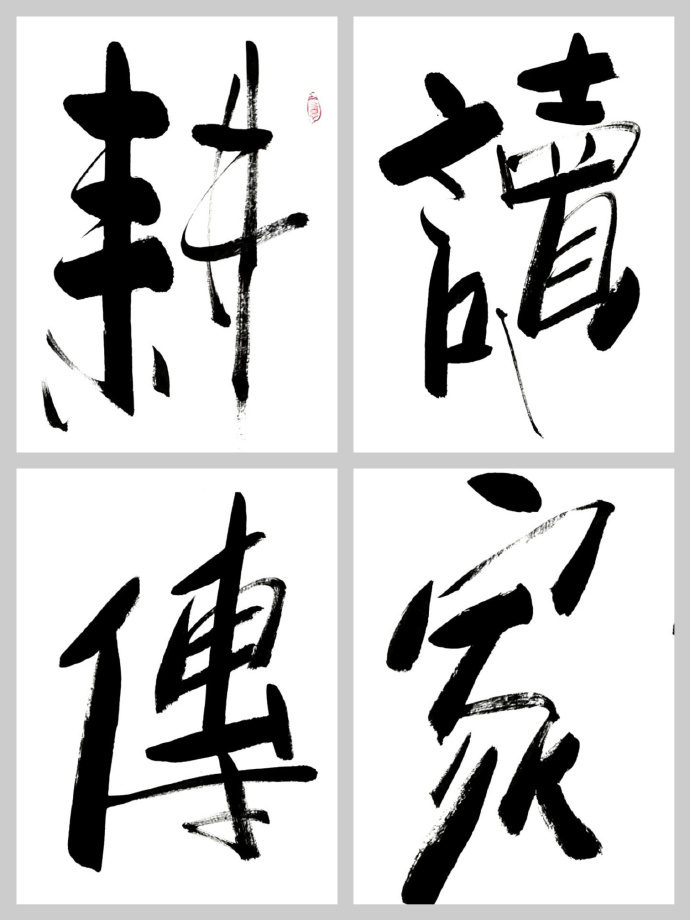 傅继英书法:耕读传家。指的是既学做人,又学谋生。耕田可以事稼穑,丰五谷,养家糊口,以立性命。读书可以知诗书,达礼义,修身养性,以立高德。