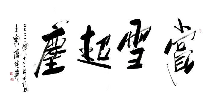 傅继英书法:赏雪超尘。形容一种思想境界,欣赏雪花的晶莹剔透,冰清玉洁,让人想到在这凡尘世界也要保持一种像雪花一样的纯洁无瑕,保持一份超凡脱俗、高洁的心境。