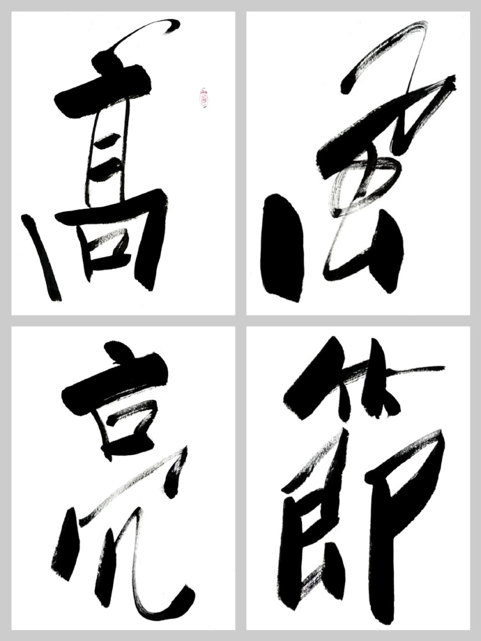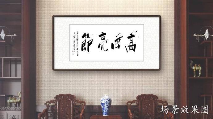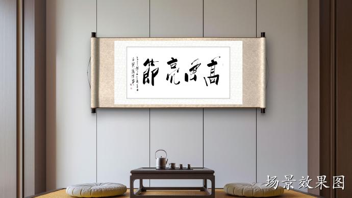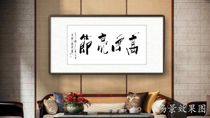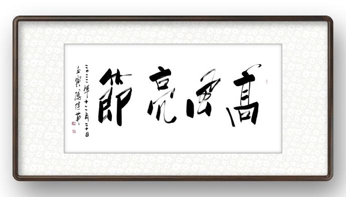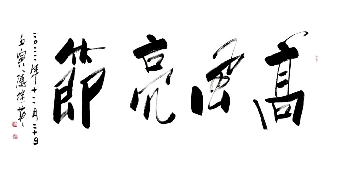傅继英书法:高风亮节。高风:高尚的品格;亮节:坚贞的节操。形容人品格高尚,有坚贞的节操。出自宋·胡仔《苕溪渔隐从话后集》,“余谓渊明高风峻节,固已无愧于四皓,然犹仰慕之,尤见其好贤尚友之情也。”