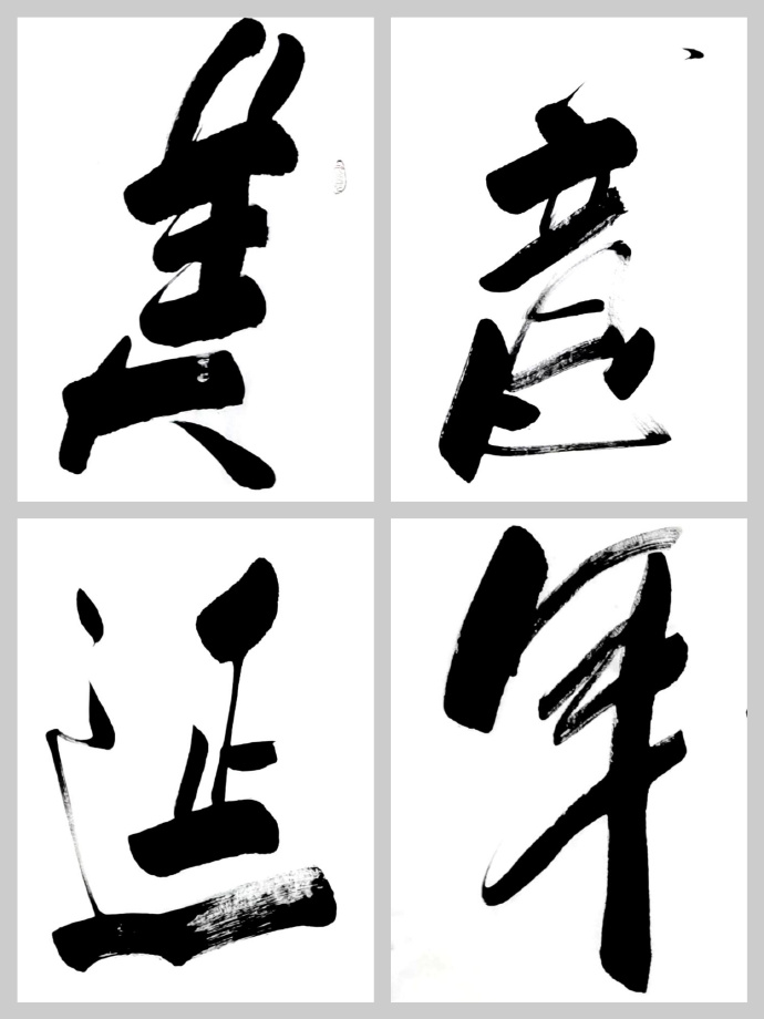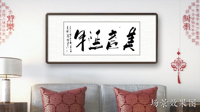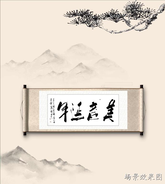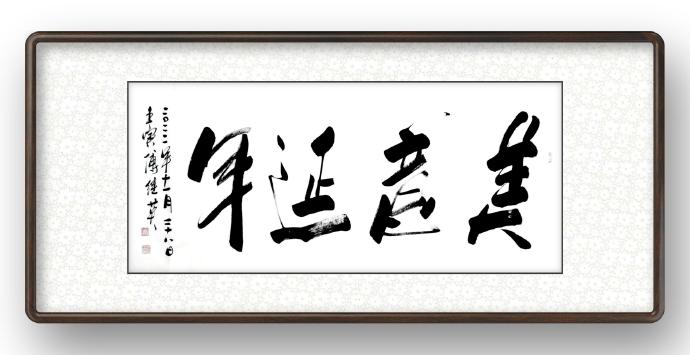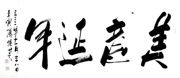 傅继英书法:美意延年。意思是对一切乐观的人,能够健康长寿。出自 《荀子·致士》。