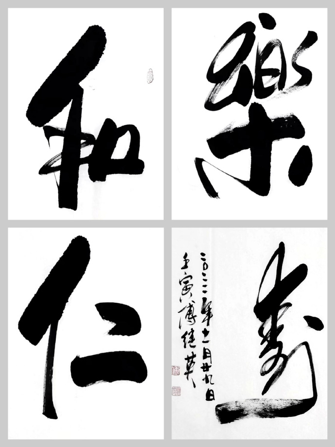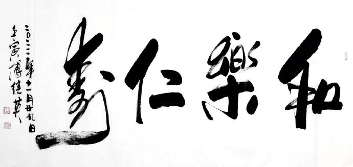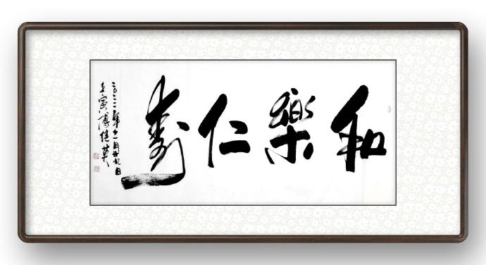 傅继英书法:和乐仁寿。和指和谐,协调。乐,欢喜,快活。仁寿,谓有仁德而长寿。语出《论语·雍也》:“知者动,仁者静,知者乐,仁者寿。”