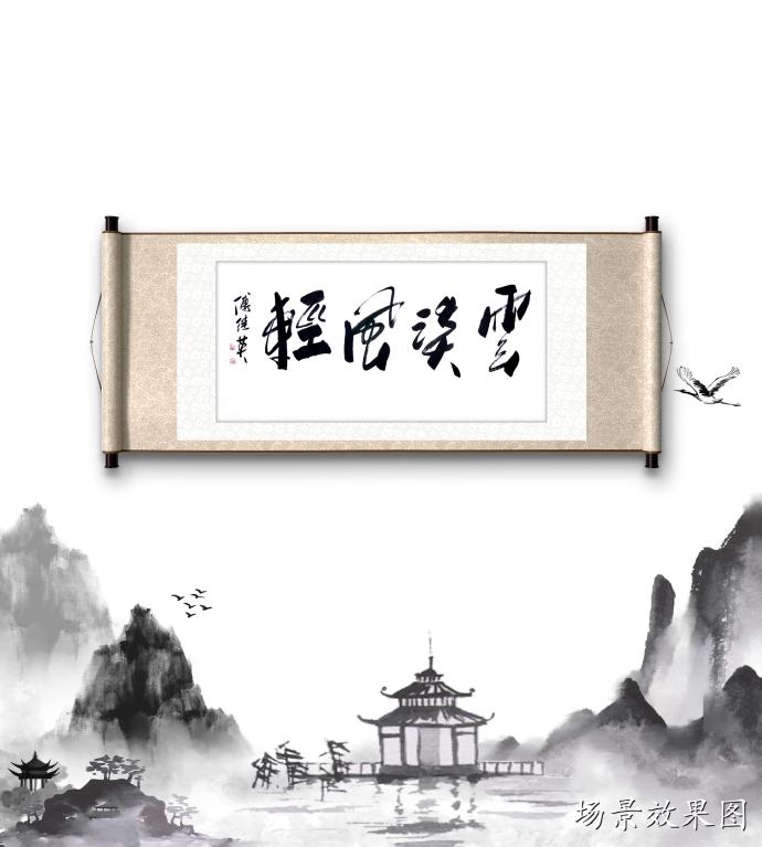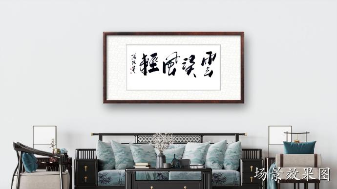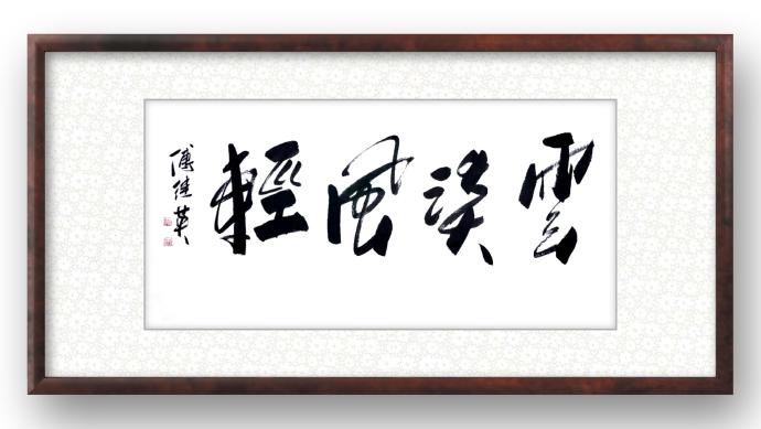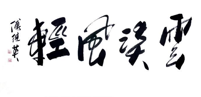 傅继英成语书法:云淡风轻。云淡风轻的意思微风轻拂,浮云淡薄。形容天气晴好。亦作“风轻云淡”。云淡风轻的出处宋·程灏《春日偶成》:“云淡风轻近午天,傍花随柳过前川。”