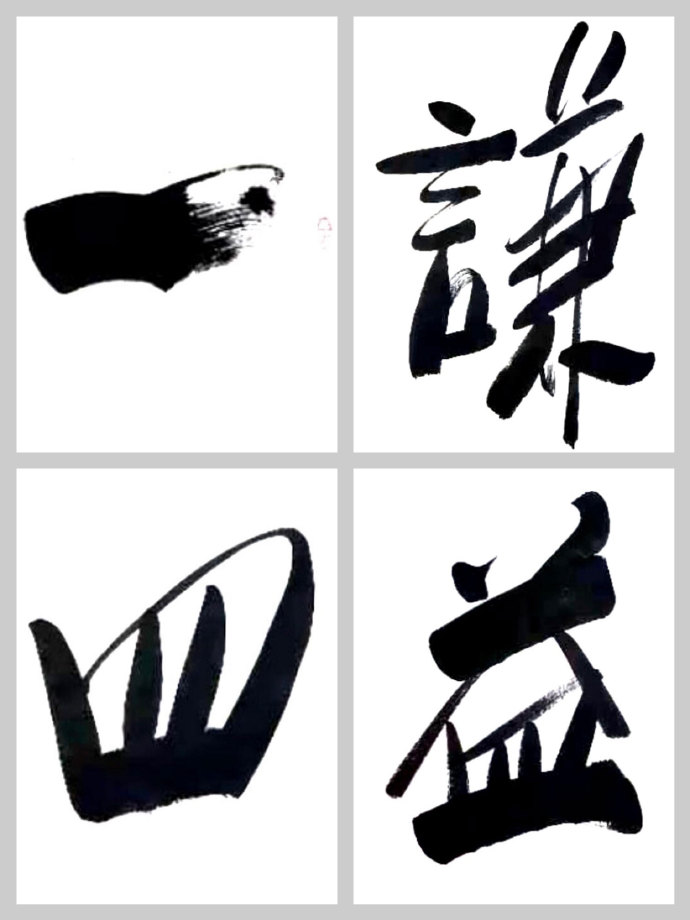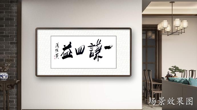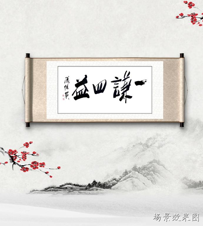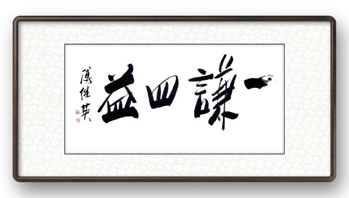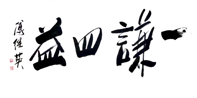 傅继英书法:一谦四益。意思指谦虚能使人得到好些益处。出自《周易·谦》,“天道亏盈而益谦,地道变盈而流谦,鬼神害盈而福谦,人道恶盈而好谦。”《汉书·艺文志》:“一谦而四益,此其所长也。”宋 苏轼 《赐皇叔改封徐王颢上表辞免册礼许诏》:“卿深惧盈满,过形抑畏,一谦四益,当克永年。”