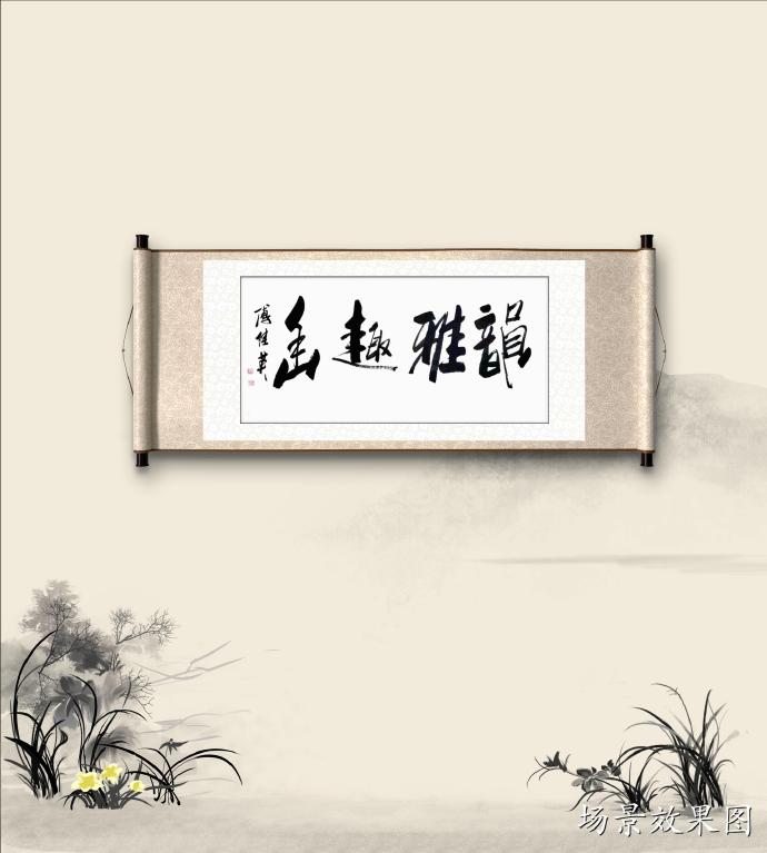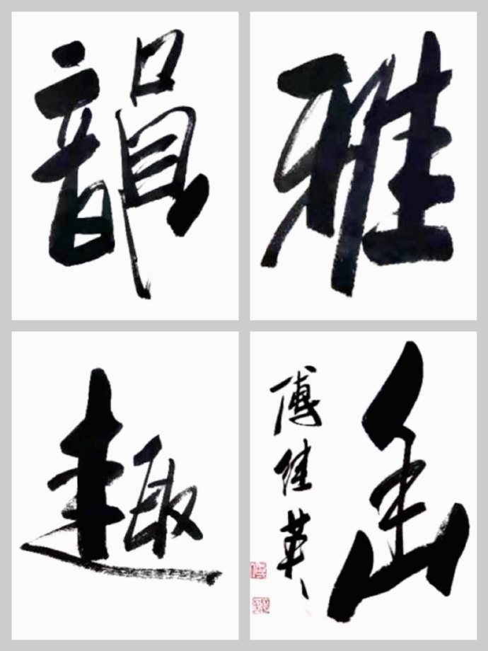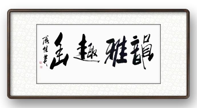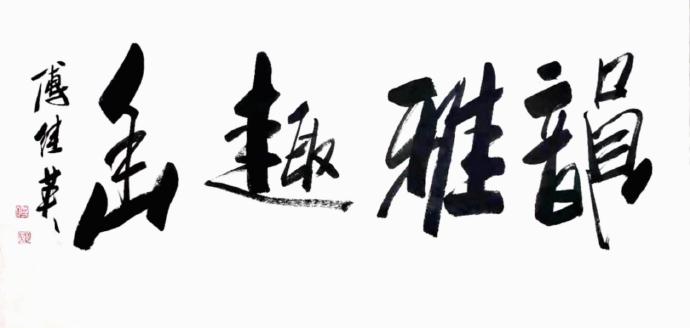 傅继英书法:韵雅趣幽。意思是幽深高雅的情趣。韵,主要指的是一种风度、风致或者叫意味;雅,主要是说正规的,标准的、 美好的,高尚的,不粗俗的;趣,主要指的是一种乐趣、兴趣或者叫时尚;幽,主要是讲幽深、深邃、或者说沉静而安闲。
