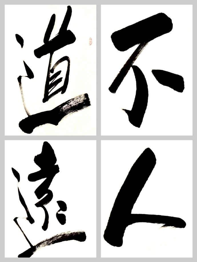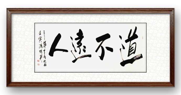 傅继英书法:道不远人。出自《中庸》第十三章,子曰:道不远人,人之为道而远人,不可以为道。“道”就是《中庸》中所指的中庸之道,是一种至大无外、至小无内的至高道德,是天地、人伦之道。道不远人意即此道人可以正心诚意修炼而成,旨在鼓励人努力向“道”靠近,不断努力提高自己的认知水平和伦理水平。