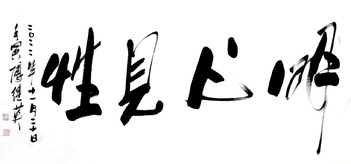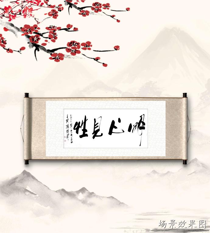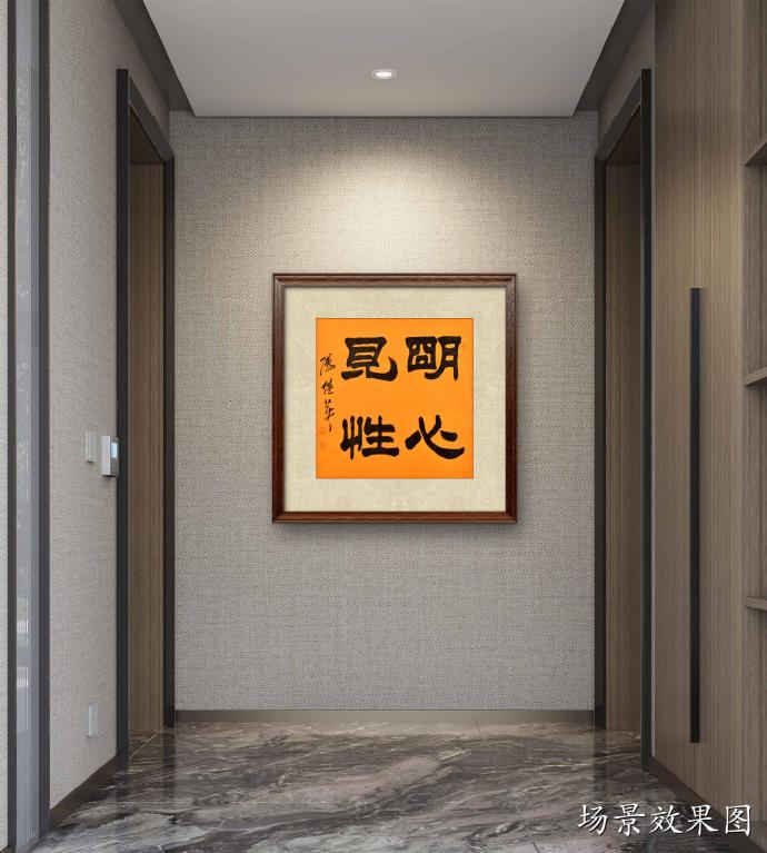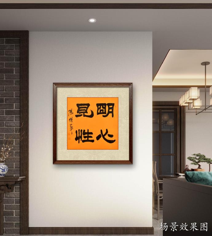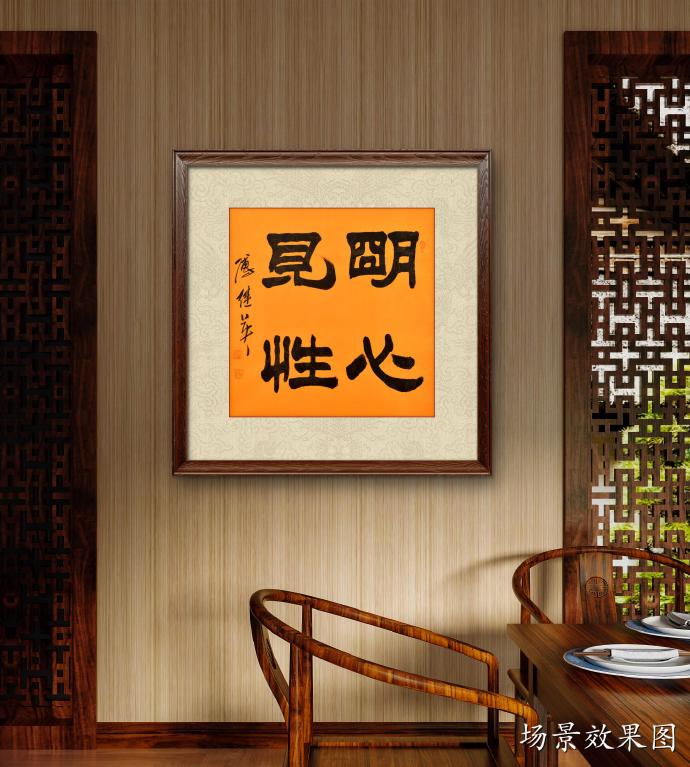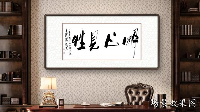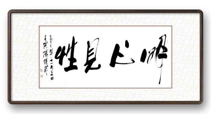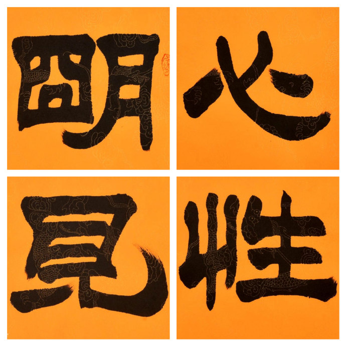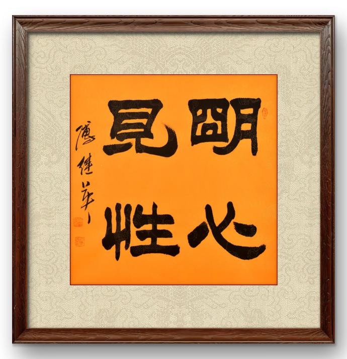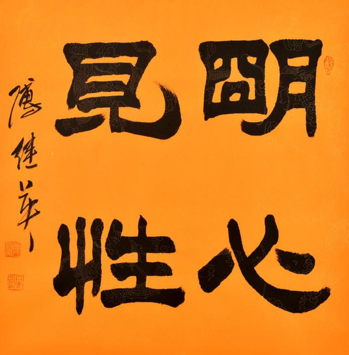 傅继英书法:明心见性。明心是发现自己的真心;见性是见到自己本来的真性。见到自己本来的真性了,所以说是直指本心。明本心,见不生不灭的本性。乃禅宗悟道之境界。言语道断、心行处灭。