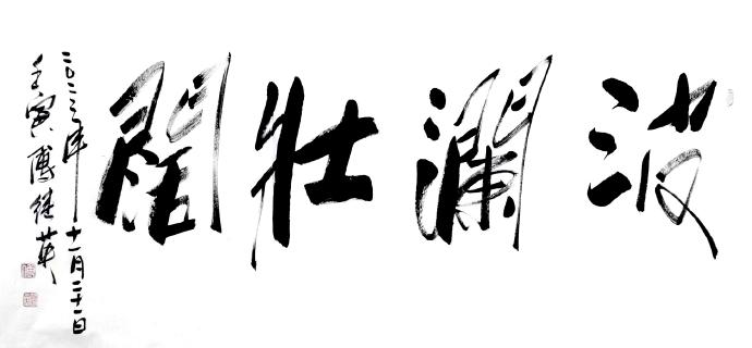 傅继英书法:波澜壮阔。澜:大波浪;壮阔:又雄壮又宽广。指水的波涛浩渺广阔。比喻声势雄壮有力;规模宏大。出自南朝·宋·鲍照《登大雷岸与妹书》,“旅客贫辛,波路壮阔。”可以形容:用于江河、大海、文章、运动等,是写那种场面宏大的词。
