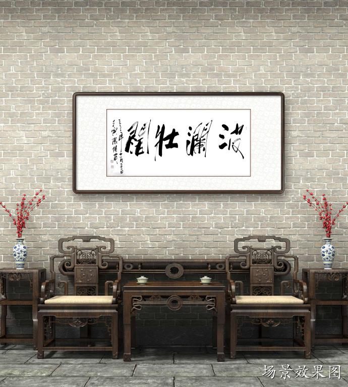 傅继英四字成语行书作品《波澜壮阔》办公室书房客厅茶楼书法字画