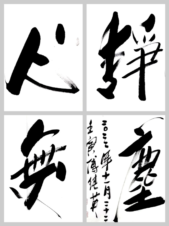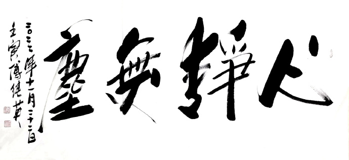 傅继英书法:心静无尘。意思是对生活少一分奢望,多几分平淡,追求的是从量到质的改变,使精神与自然相结合,是一种返璞归真的境界,即平静。