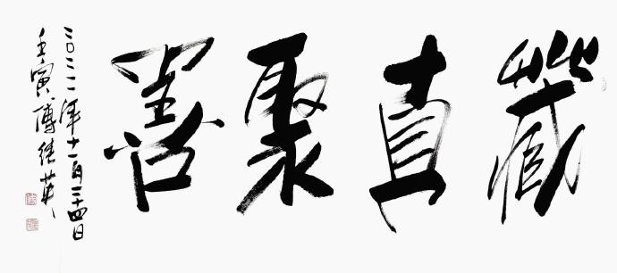 傅继英书法:藏真聚善。告诉我们善于发现真善美,活出真善美,做一个地地道道的“真人”、“善人”。简单地说,就是把好的东西,美好的聚集在一起的意思。集合优良,去除劣质。