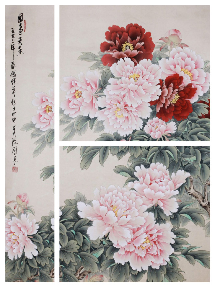 国画牡丹图《国色天香》,一九九三年春,傅继英绘于中央美院壁画系。现永久收藏于上海世博会信息发展网馆