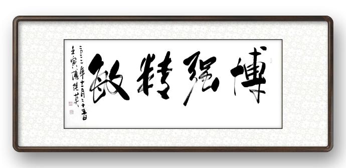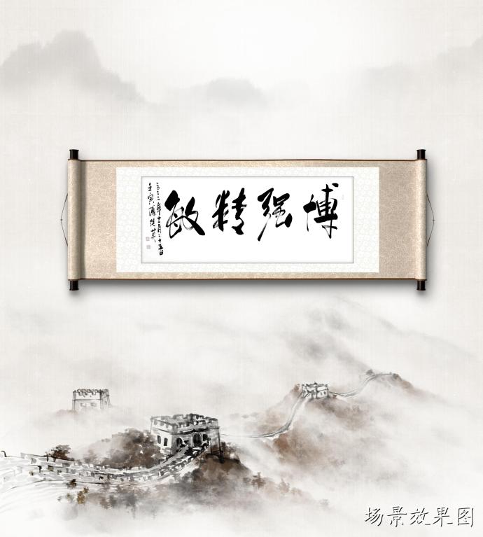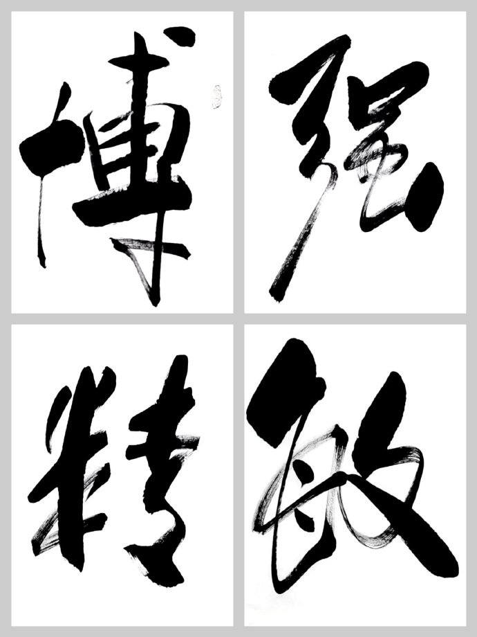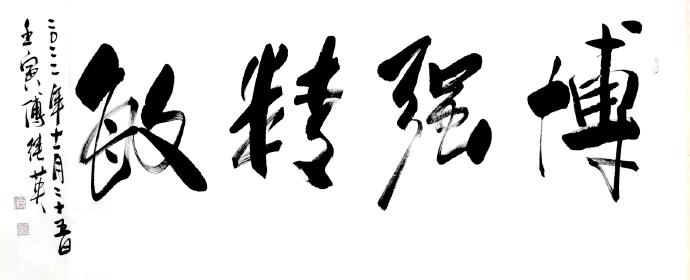 傅继英书法:博强精敏。这不是一个词语,而是由四个字合起来,表示要具备四方面的品质。“博”是学识渊博,胸怀宽广。“强”是身体健壮,能力高强。“精”是业务精通,精明能干。“敏”是思维敏锐,做事勤勉。整个意思乃是学问广博,意志刚强,做事情、观察研究问题非常精细深入。