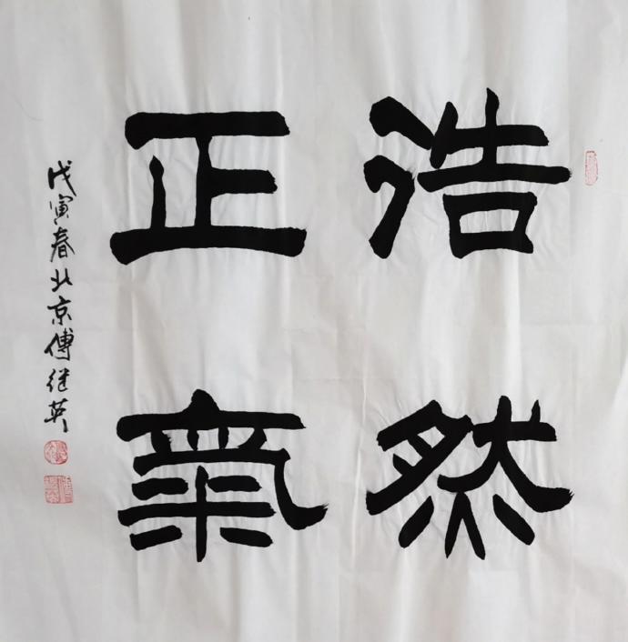 傅继英书法:心生欢喜。意思是内心之中产生欢乐心喜的情绪。心生:指的是由内心产生的;欢喜:指的是欢乐心喜、喜欢、喜爱、高兴。